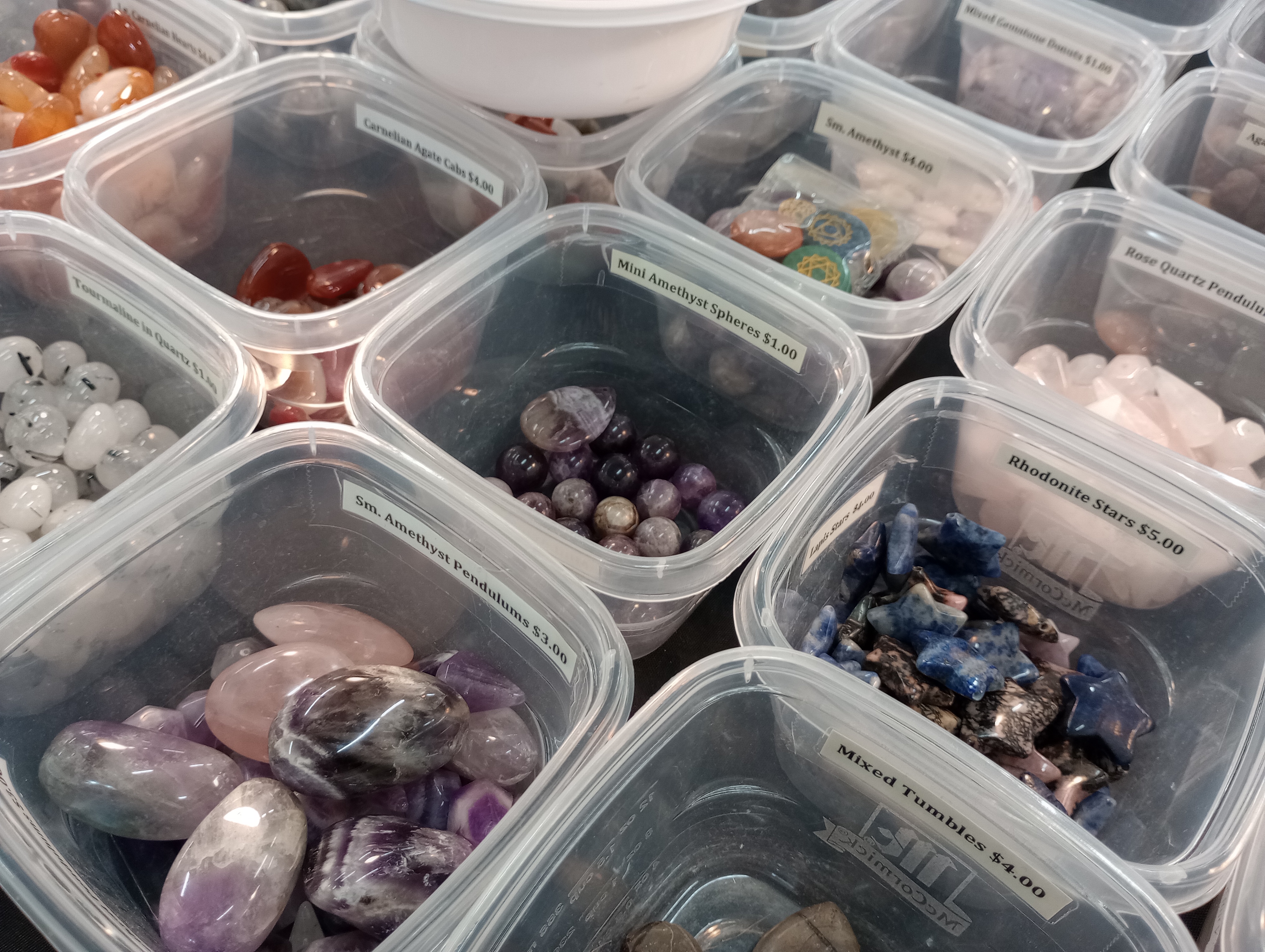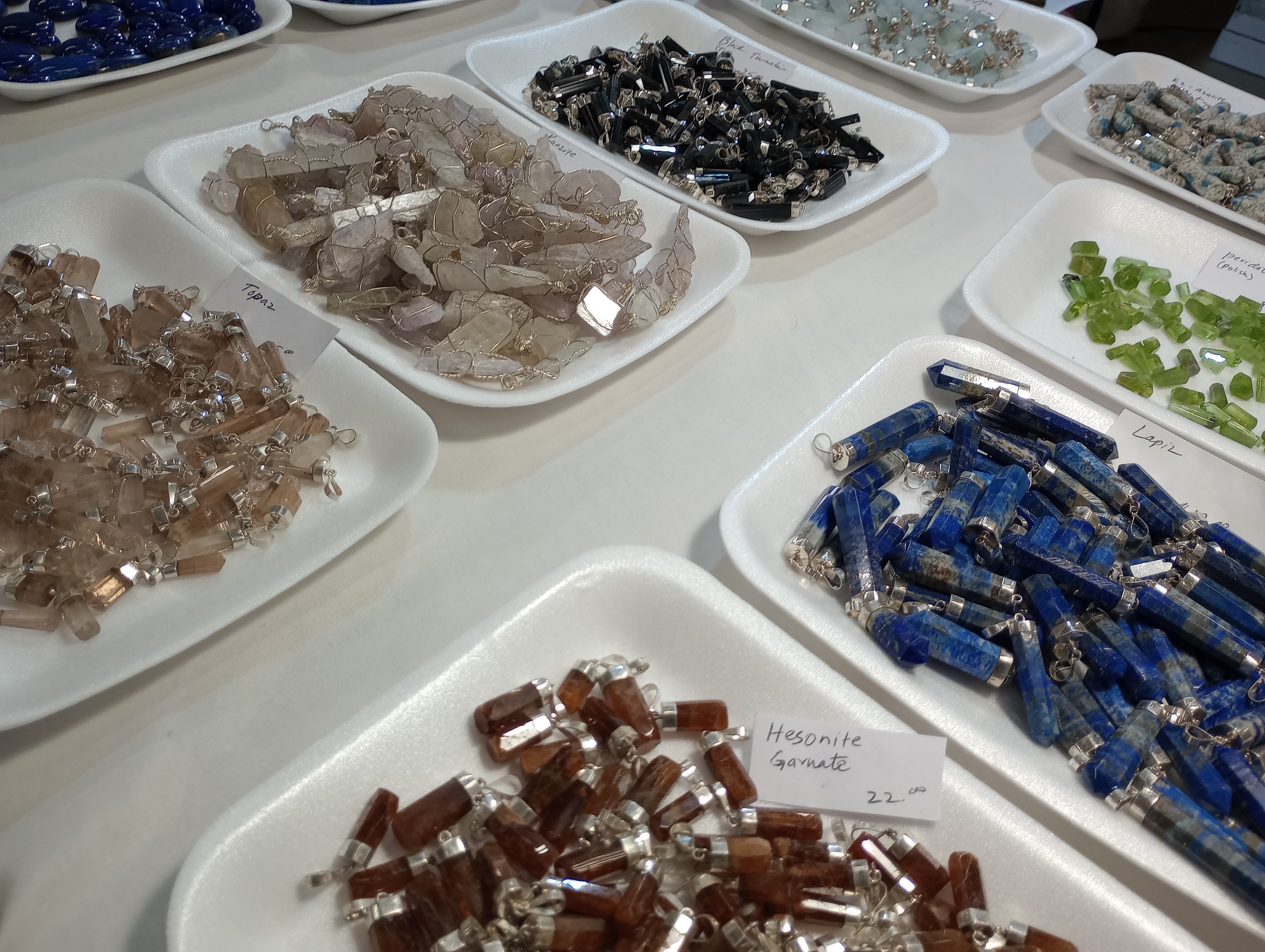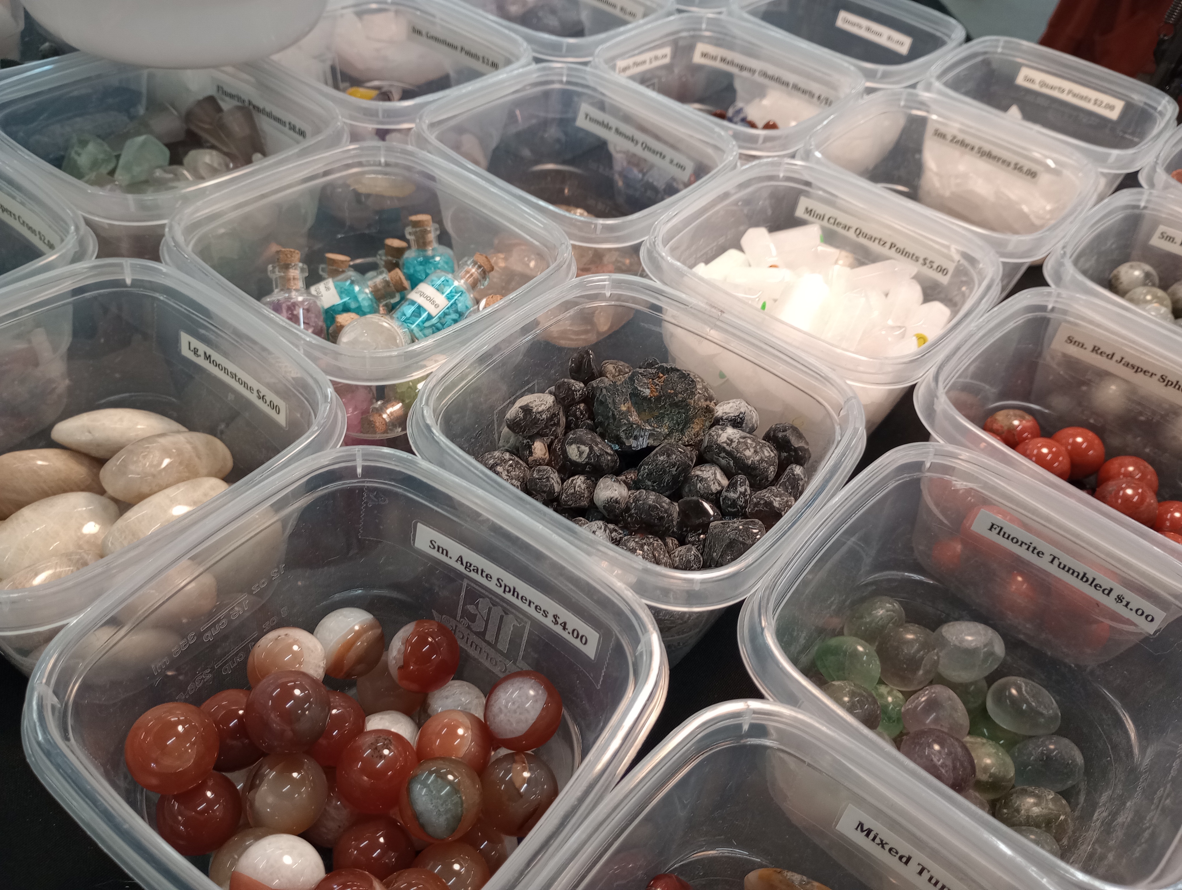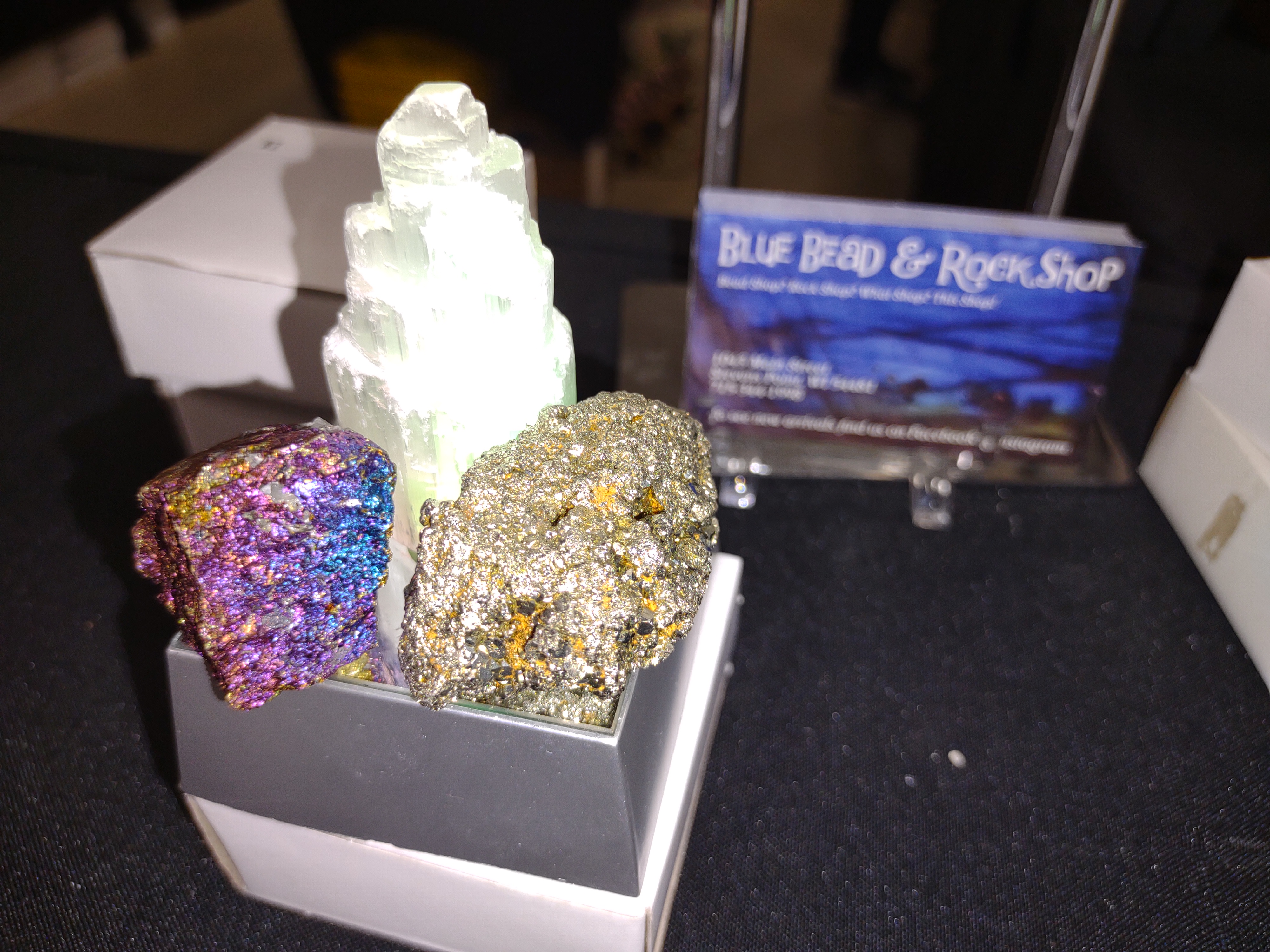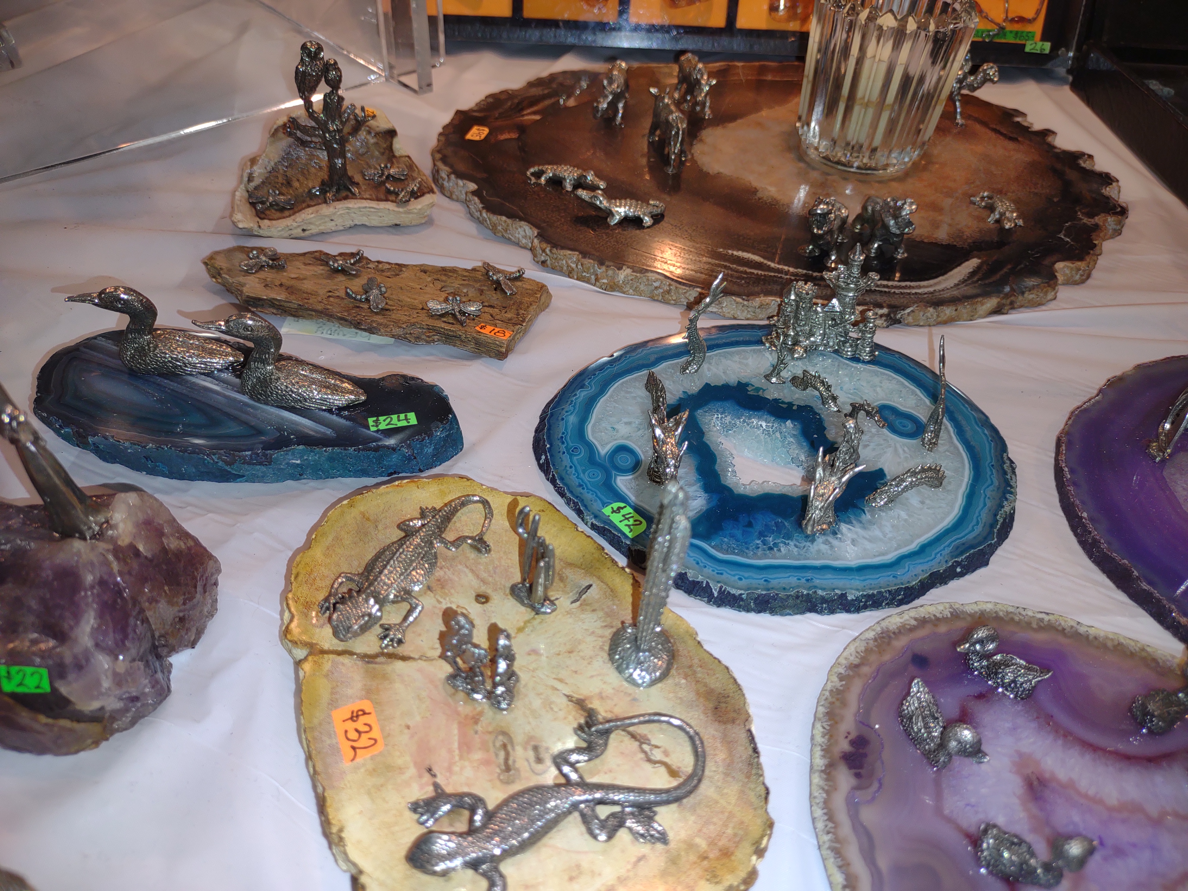 Kitz PresentationsEnjoy these views of nature all under one roof one day a year at a rock show near you or now. Start with May 2023 with a collection of amber. Can you name each rock that you see? Some rocks are polished and used to make things like jewelry or home decor. Others are for collectors who display them at home. Which ones do you like? A light box or stand can help with objects like crystal displays. Geodes are cut open to reveal crystals within. Some rocks are carved. Can you find any? You can see prices on some of the items for sale. You can also find fossils of various sizes at these shows.
